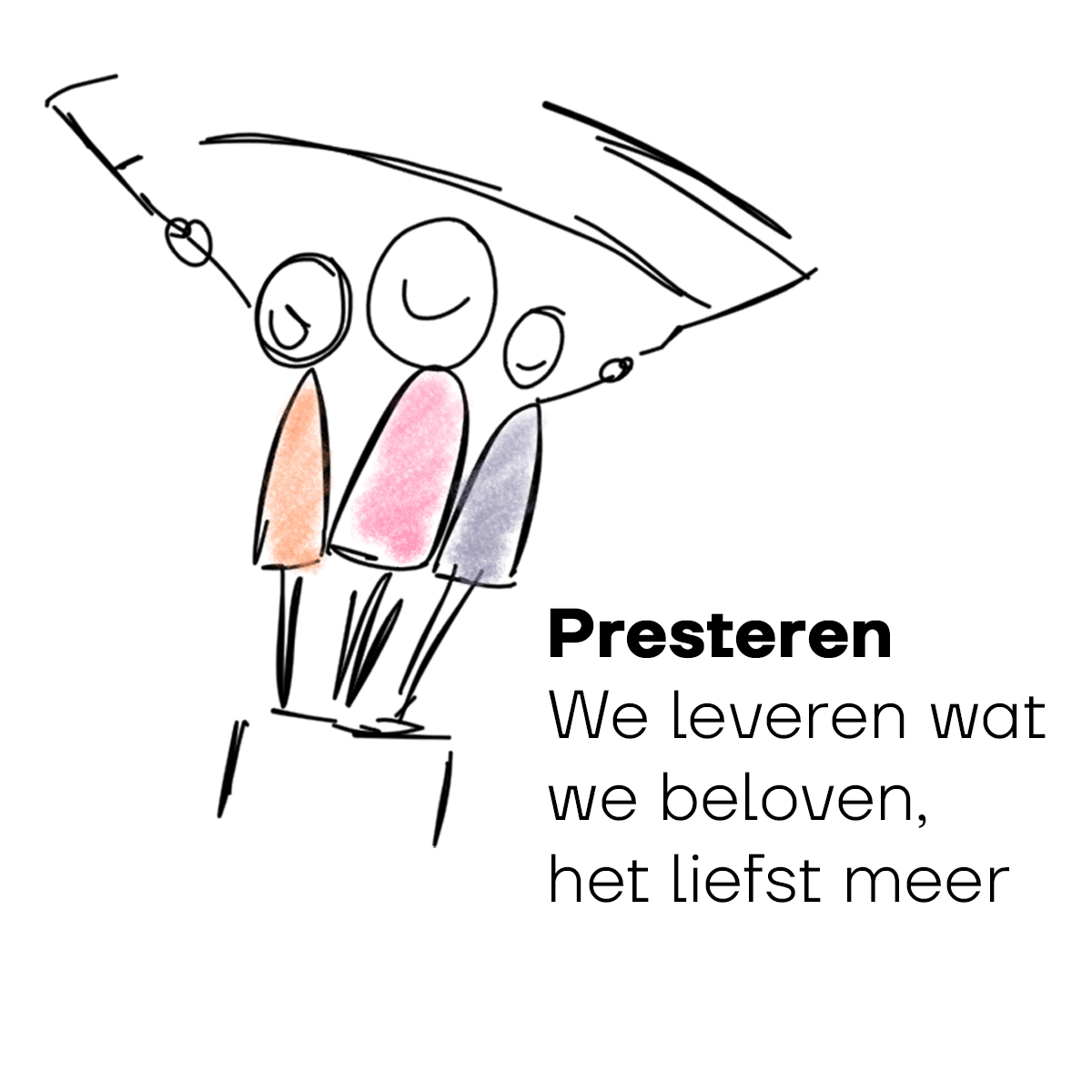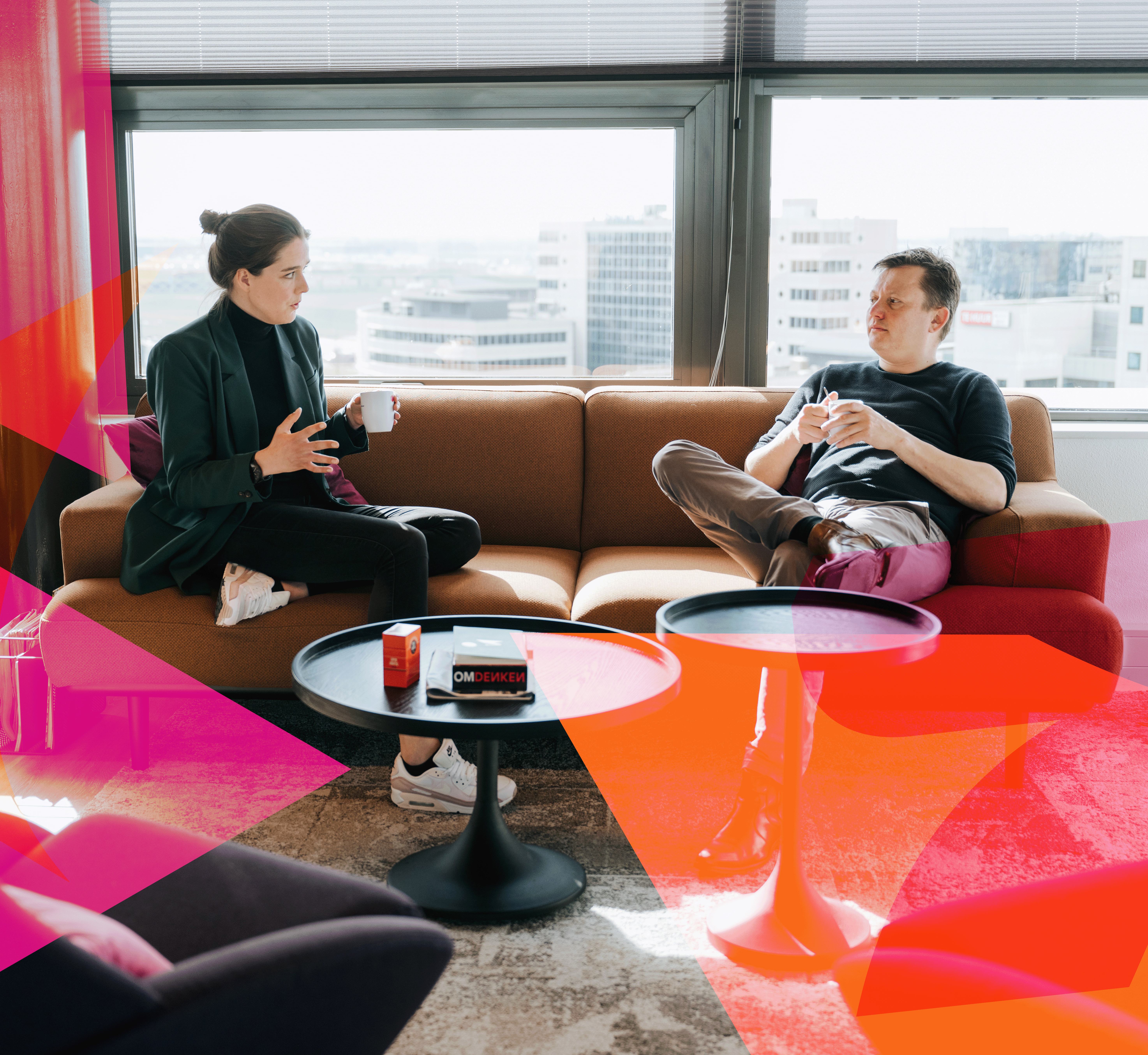Soms wordt de scherpte van dutch process innovators ervaren als brutaal of agressief. Rob: “Scherp zijn heeft een randje, een bepaalde directheid. Dat is precies de bedoeling. Scherp zijn betekent lef tonen. Het lef om de juiste vragen te stellen, om met slimme oplossingen te komen en om vast te houden aan kwaliteit. Zelfs als dat betekent dat je af en toe tegen de stroom in moet gaan.” Dit besef van scherpte is niet alleen zichtbaar in hoe dutch process innovators werkt, maar is zichtbaar gemaakt in de visuele identiteit. De huisstijl heeft strakke lijnen, scherpe hoeken en een bewust gekozen lettertype zonder afrondingen. In alle details is de kernwaarde ‘Scherp’ verwerkt.
