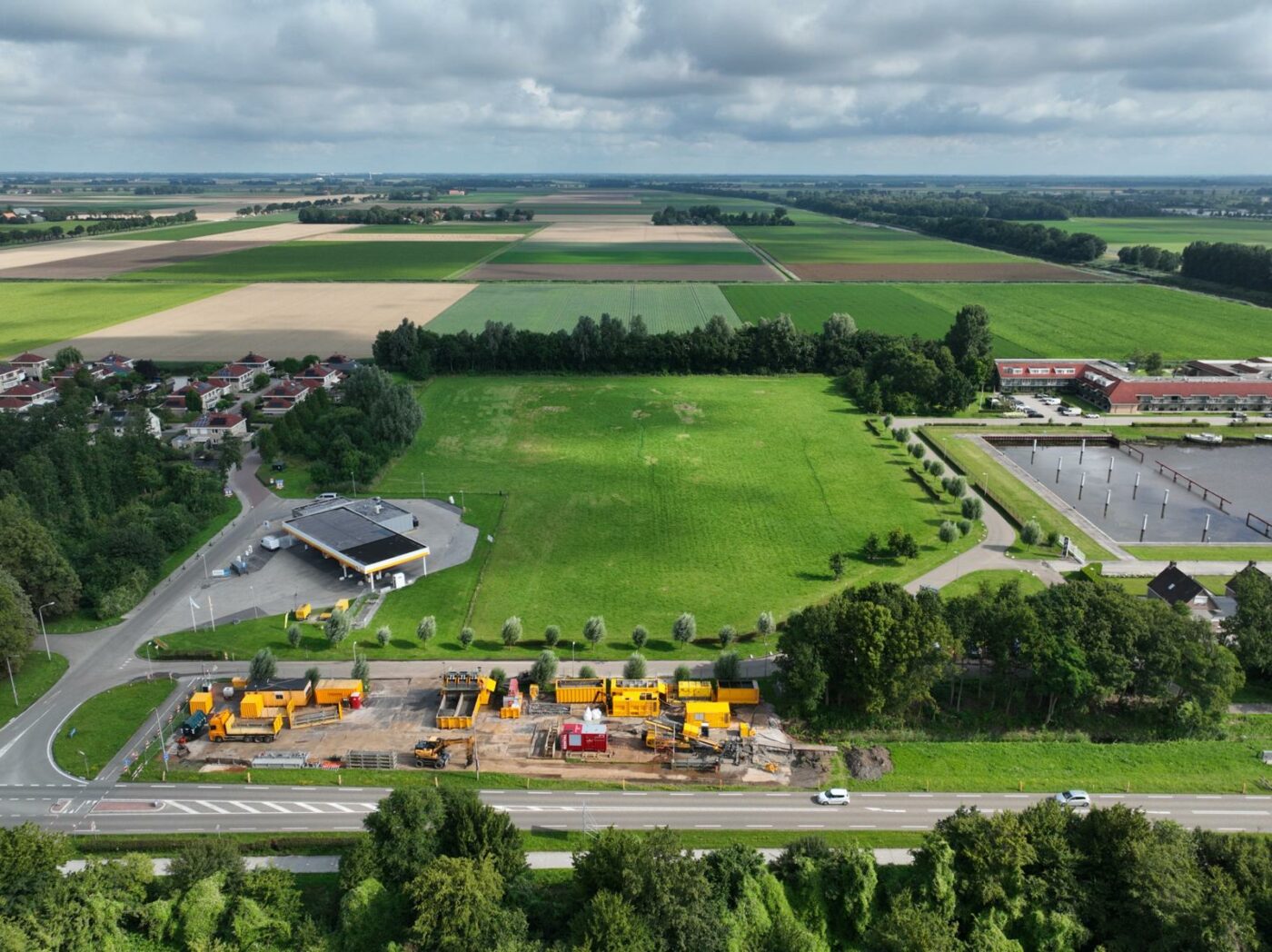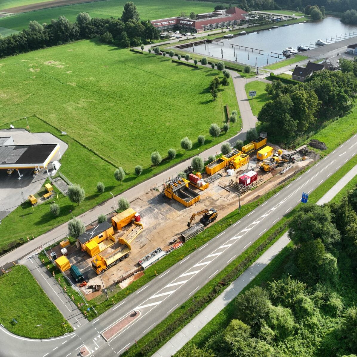 Het plaatsen van de elektriciteitshuisjes, die door een grote telescoopkraan op hun plaats worden gezet. Dat is eveneens een complex proces, waarbij de locaties zorgvuldig worden bepaald in samenwerking met lokale gemeentes.